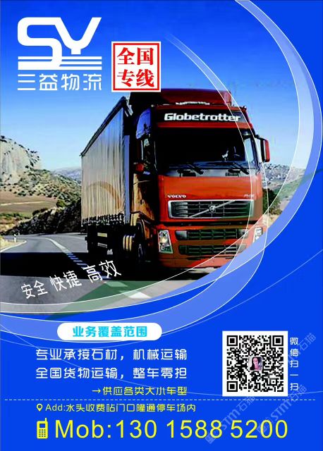 專業(yè)承接石材,機(jī)械運(yùn)輸! 零擔(dān)-整車 供應(yīng)各類大小車型! 13015885200!