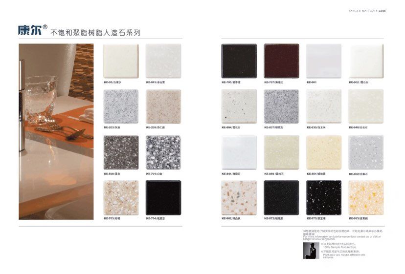 康爾人先后開發(fā)出了色彩豐富的 100% 純亞克力系列,復合亞克力系列,不飽和樹脂系列,石英石、集成成品臺面和高分子復合材料門板系列。產(chǎn)品系列多樣、顏色豐富、品質(zhì)穩(wěn)定、已銷往世界幾十個國家,深受國內(nèi)外客戶的好評.