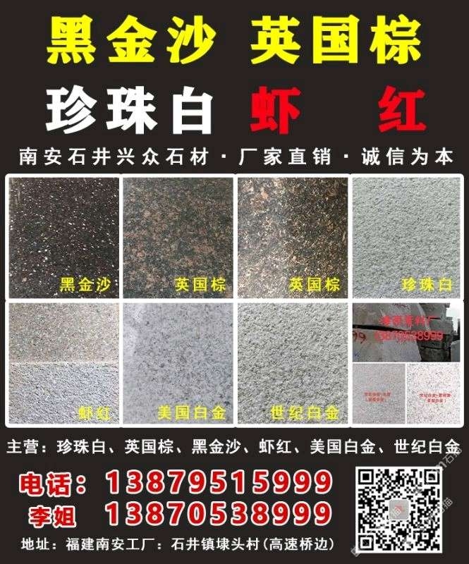 發(fā)布信息: 美國白金珍珠白礦山直銷-專業(yè)石材供應商,是一家集礦山、荒料、深加工、成品銷售為一體的大型石材企業(yè)。公司主要生產的產品有:珍珠白,新珍珠白、美國白金、世紀白金、新礦珍珠白、珍珠白工廠、珍珠白廠家、珍珠白光面、珍珠白荔枝面、珍珠白火燒面、新美國白麻、帝王黑、蝦紅、黑金沙等主打產品。企業(yè)具有承接各類大型工程,出口毛光板、規(guī)格板銷售等項目的業(yè)務能力。歡迎來電洽談13879515999劉,13870538999李