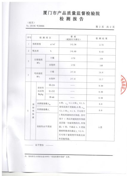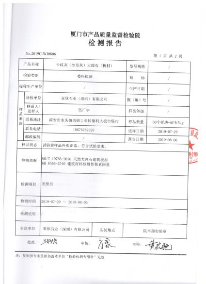 亞欣石材卡紋灰冰島灰檢測報(bào)告