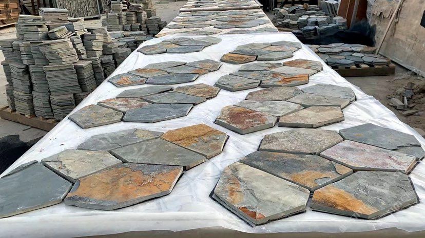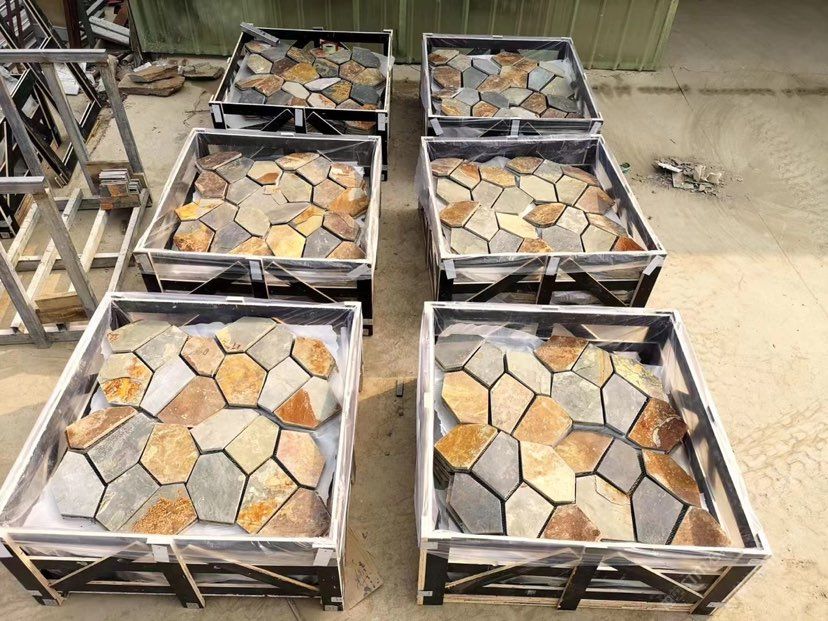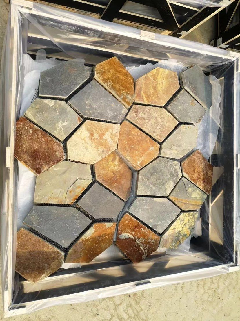 易陽石材:網(wǎng)帖石板巖鋪地碎拼13503361627