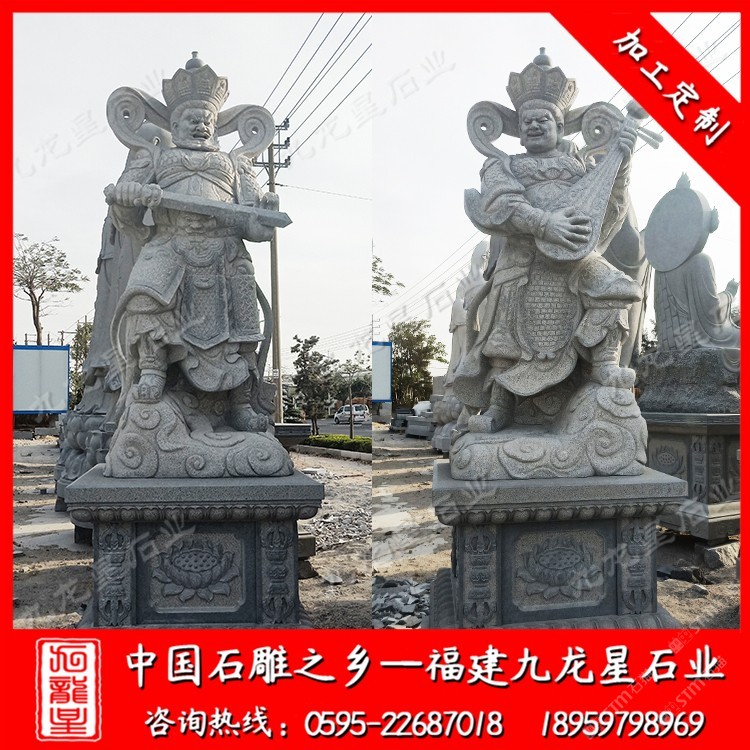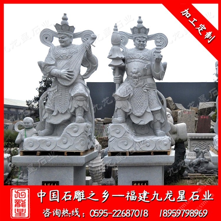發(fā)布信息: 九龍星石業(yè)從事石雕行業(yè)二十多年,常年批發(fā)石雕佛像,石雕四大天王站像、坐像四大天王門神、石雕觀音、石雕十八羅漢、石雕媽祖等。才是可以為青石、漢白玉、芝麻白、芝麻黑。咨詢電話:18959798969 常見的造型只有站像和坐像兩種,一般是單面造型。青石四大天王石雕像分別為護(hù)持東方國土東勝神洲的持國天王,護(hù)持南方國土南瞻部洲的增長(zhǎng)天王,護(hù)持西方國土西牛賀洲的廣目天王,護(hù)持北方國土北俱蘆洲的多聞天王。由于四大天王在佛教諸佛菩薩中承擔(dān)著護(hù)持佛法、降妖伏魔的職責(zé),因而其示現(xiàn)的造型通常身穿鎧甲,手持法器,各不相同。