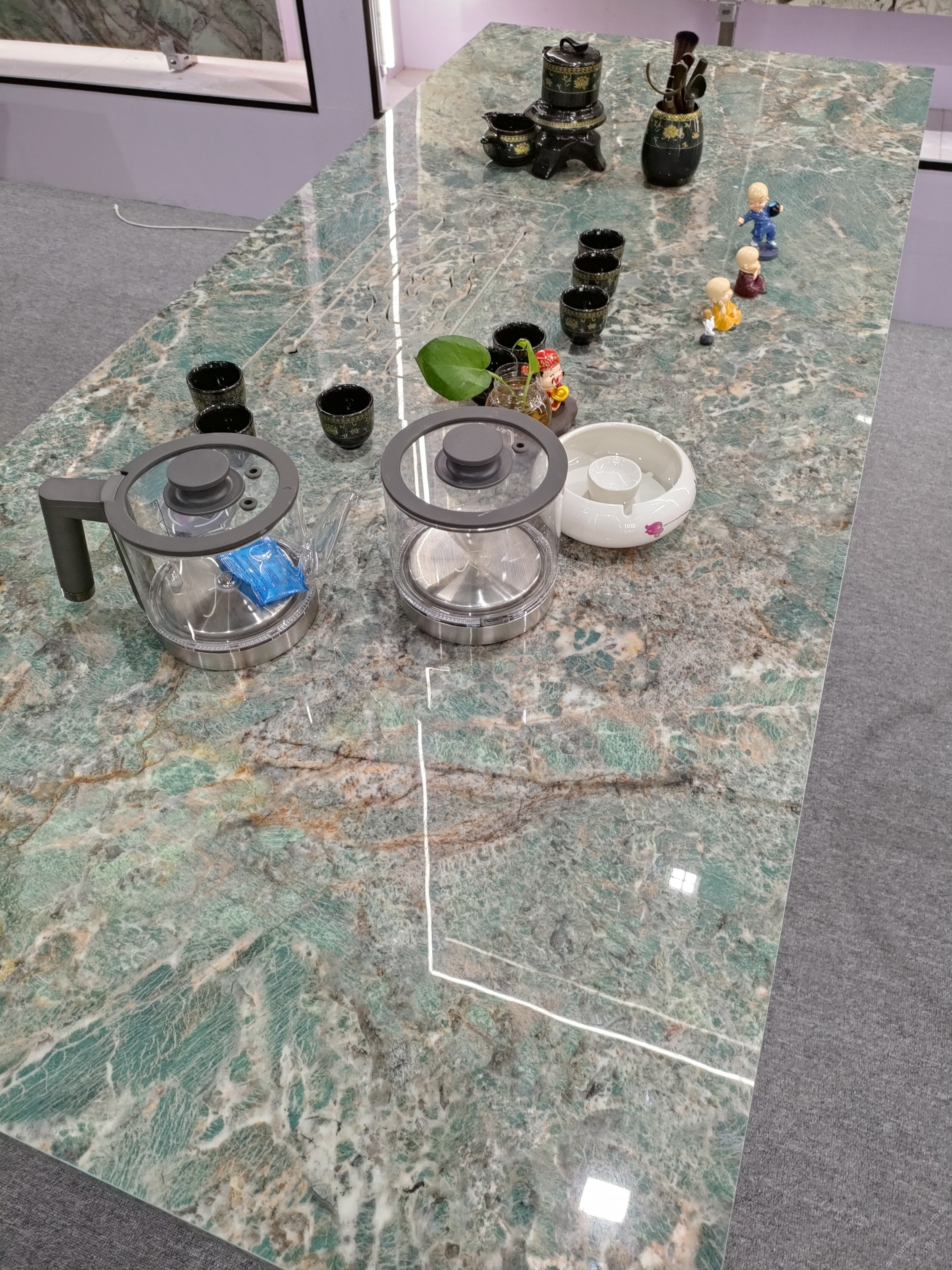 亞馬遜綠輕奢巖板別墅茶桌椅組