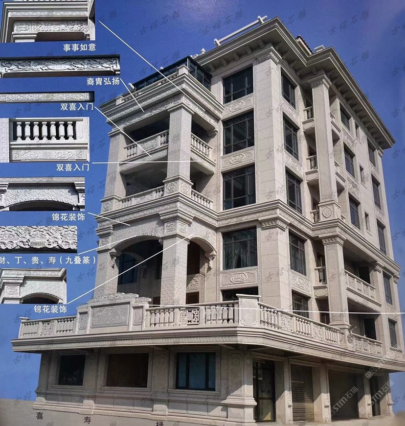 雕刻石雕別墅石材裝飾欄桿線沿入戶門窗戶露臺觀景亭