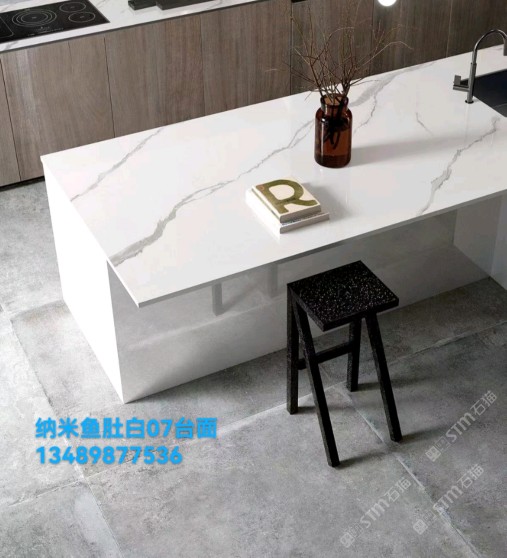 工程圓柱純白魚肚白微晶石臺(tái)面13489877536