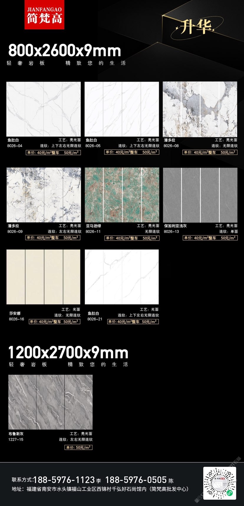 簡(jiǎn)梵高巖板(批發(fā)) 聯(lián)系人:陳先生    188****0505 查看 手機(jī)號(hào)碼:無 主營范圍: 大板批發(fā)、環(huán)境石材、人造石加工、 企業(yè)地址:福建南安水頭鎮(zhèn)福山工業(yè)西錦村千弘好石尚館內(nèi)(批發(fā)中心)