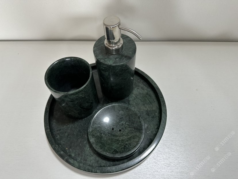 大花綠石材衛(wèi)浴四件套 石材香皂盒淋浴擺件托盤