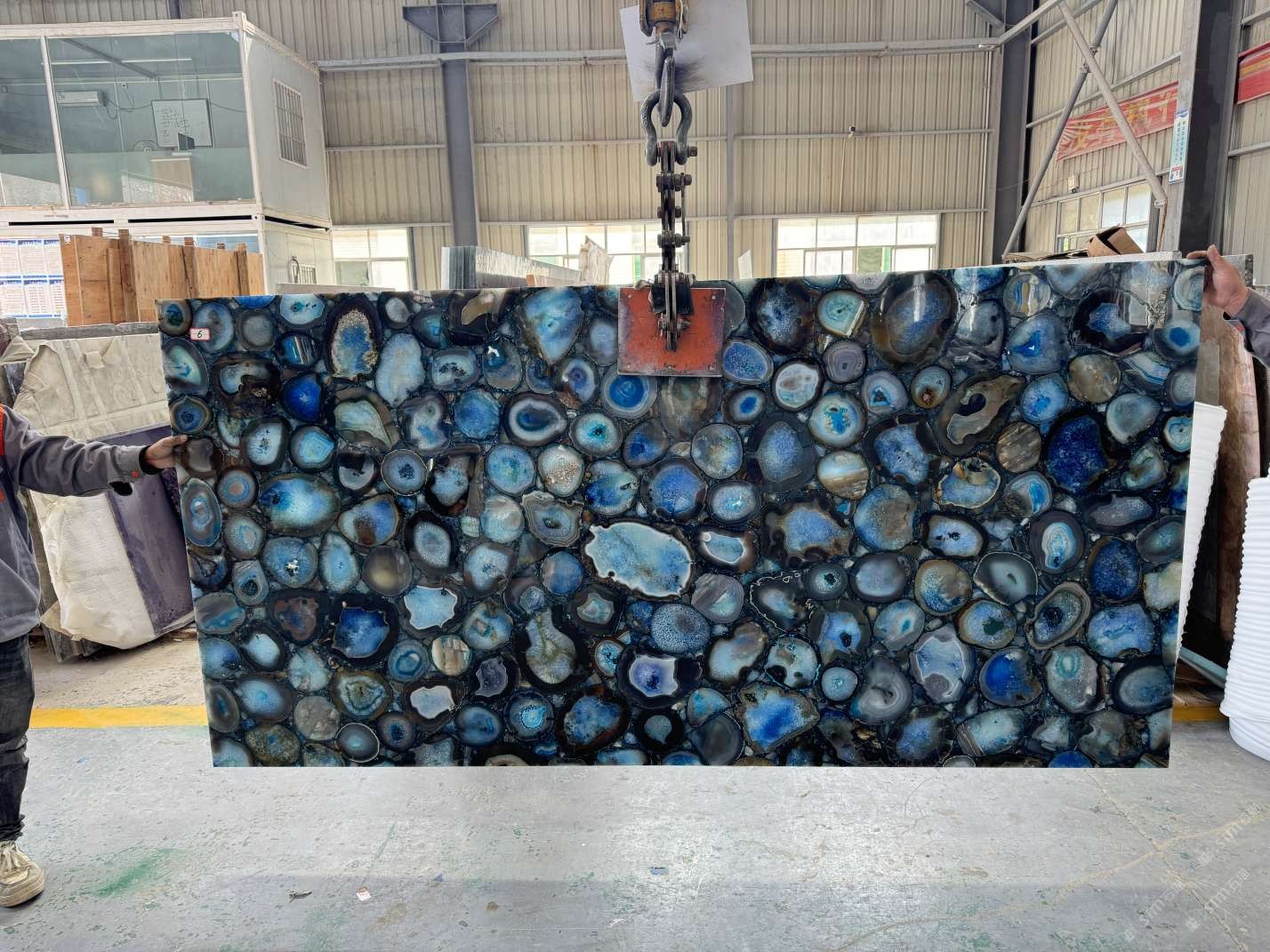 實心通體藍(lán)瑪瑙大板,高端透光石材,半寶石板材定制