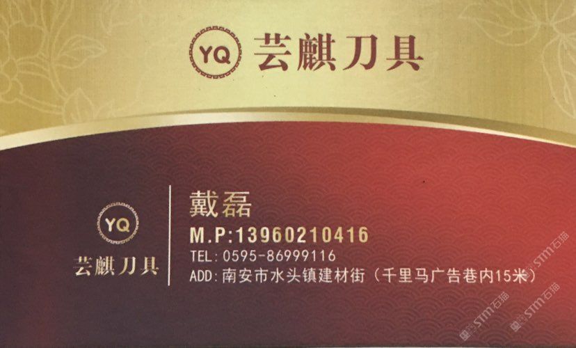 蕓麒刀具 聯(lián)系人:戴磊    139****0416 查看 手機號碼:無 主營范圍: 其他、 企業(yè)地址:福建南安水頭鎮(zhèn)建材街千里馬廣告巷內(nèi)