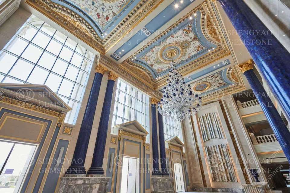 定制大尺寸青金石羅馬柱,半寶石羅馬柱