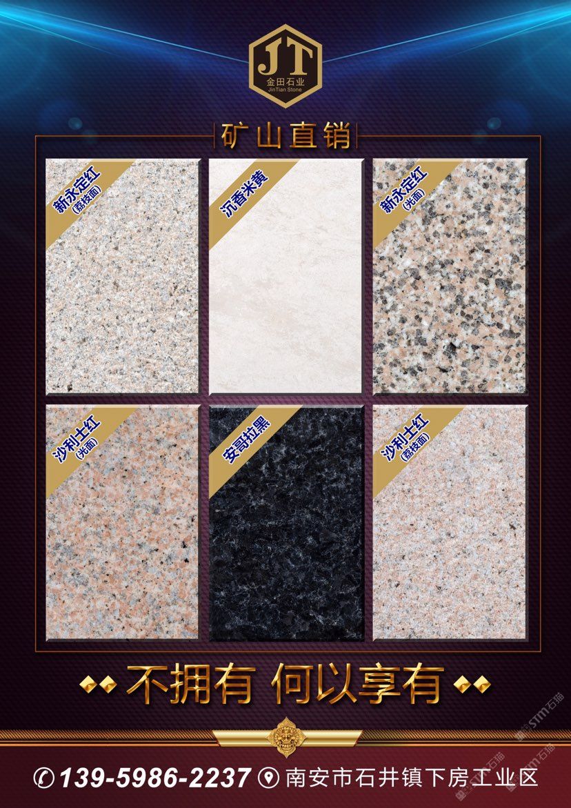新永定紅,安哥拉黑,沉香米黃,沙利士紅