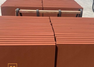 咖啡色砂巖荒料堆